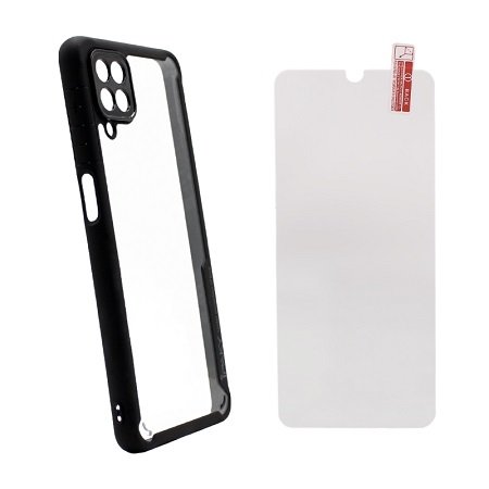 Ακρυλική αντικραδασμική πλάτη με ενισχυμένες άκρες για Galaxy A12 + Προστατευτικό γυαλιού δώρου