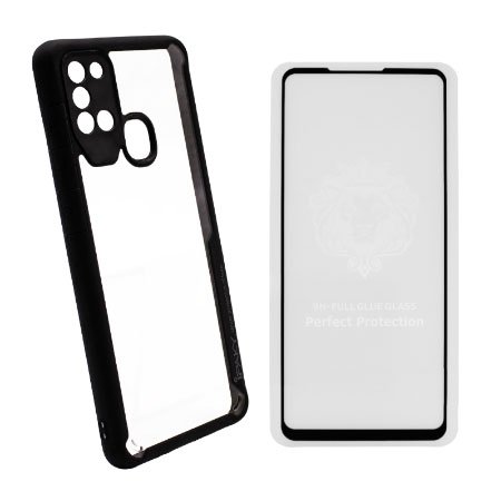 Ακρυλική αντικραδασμική πλάτη με ενισχυμένες άκρες για Samsung Galaxy A21s + 5D Προστατευτικό γυαλιού πλήρους οθόνης