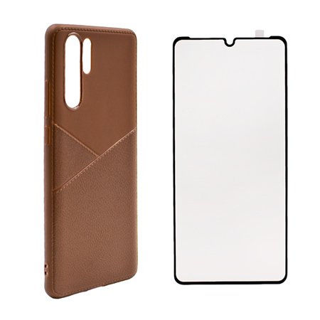 Πίσω δέσιμο σιλικόνης για Huawei P30 Pro, Καφέ + 5D CURVED Protector Full Screen